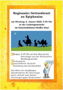 Gottesdienst am Epiphaniastag in der Luthergemeinde mit Besuch der Sternsinger.